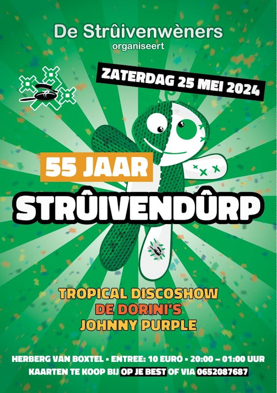 Het is 55 jaar geleden dat in carnavalsbegrippen de naam Strûivendûrp werd gebruikt voor het dorp Haaren. Dat gaan we zaterdag 25 mei vieren in de Herberg van Boxtel, de plek waar het Haarens carnaval destijds werd geboren.