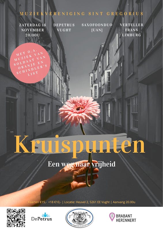 Op zaterdag 16 november 2024 vindt in DePetrus te Vught een muziekuitvoering plaats door harmonieorkest Sint Gregorius, in samenwerking met saxofoonduo [Uan] verteller Frans Limburg, scholieren uit de regio en Heemkundekring De Kleine Meijerij. Het publiek zal worden meegenomen in een verhaal met enerzijds herinneringen en anekdotes uit de oorlogstijd ’40-’45 in Haaren en Vught, maar ook met andere tijdsperiodes en landen. Dit concert zal in het teken staan van 80 jaar bevrijding van Brabant.