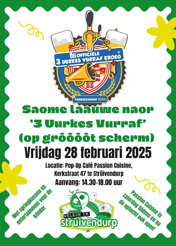 Het programma 3 Uurkes Vurraf op Omroep Brabant is voor velen de aftrap van het carnavalsfeest. De kaartjes zijn vaak al snel uitverkocht, dus de meeste mensen zetten thuis de televisie aan. Dat kan ook anders, zo dacht CV De Strûivenwèners.