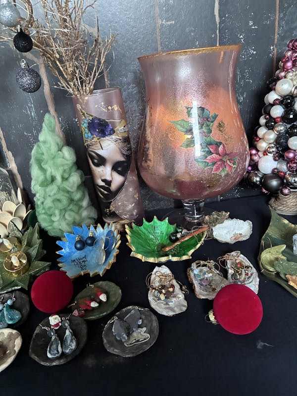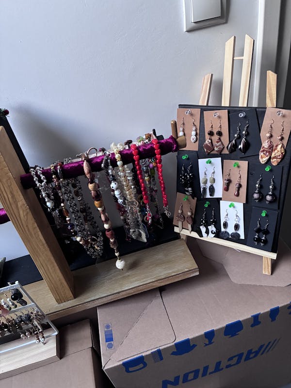 Sta ik met m'n kraam zelfgemaakte cadeaus en kerst stukjes voor KWF en een rad van fortuin op de kerstmarkt in Oisterwijk