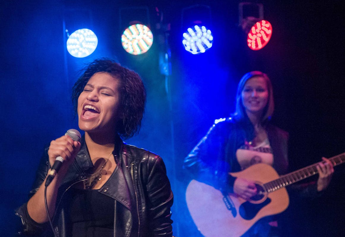 Popwise stond afgelopen tijd al op meerdere plekken: in juni bij Tuinderij de Esch, in juli bij Mie Pieters, afgelopen maart bij De Posthoorn. Popwiseleerlingen treden veel op. René: ‘Het is belangrijk dat je een doel hebt. De meeste leerlingen gaan veel harder oefenen als ze weten dat er een optreden aankomt. En door vaak te spelen krijg je enorm veel podiumervaring en leer je te dealen met verschillende omstandigheden. De ene keer is het podium krap, de andere keer de akoestiek slecht. Je leert toch door te gaan. Daarnaast zie je dat leerlingen werkelijk groeien als er interactie is met het publiek. Er zijn leerlingen die in het leslokaal teruggetrokken zijn, maar op het podium ineens uitbreken tot ware sterren. Dat doet wel iets met je. ‘