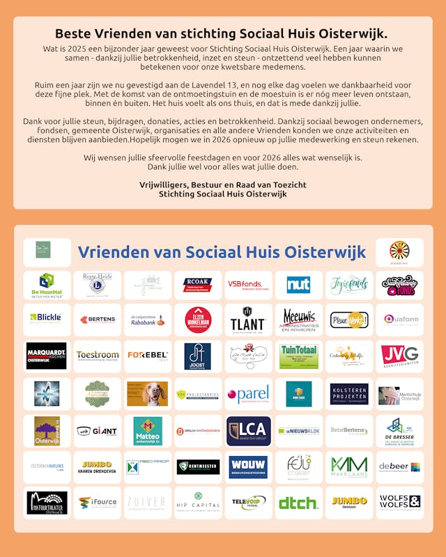 Bedankwoordje voor onze Vrienden van Stichting Sociaal Huis Oisterwijk