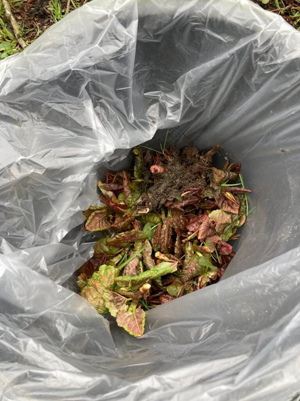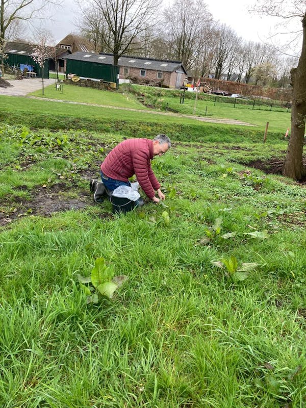 Een plant die ook weer de kop opsteekt is de Sachalinse duizendknoop. Deze is nauw verwant aan de Japanse duizendknoop en net zo'n beruchte woekeraar die we liever kwijt dan rijk zijn. In 2021 was circa 20 m² bedekt, nu gaat het al om circa 50 m². De werkgroep Park Ruijbosch heeft in overleg met de gemeente de bestrijding hiervan ter hand genomen. Dit gebeurt op een ecologisch verantwoorde wijze namelijk door stelselmatig alle scheuten die boven de grond komen af te knippen. Zo kan de plant geen nieuw voedsel aanmaken en zijn voorraad alleen maar opgebruiken voor het produceren van nieuw scheuten, net zolang tot hij helemaal verhongerd. Op 7 april zijn de eerste honderden scheuten verwijderd. Het is nu een kwestie van wekelijks in de gaten houden of er nieuwe scheuten geknipt moeten worden. De aanhouder gaat het winnen. Hopelijk geeft de duizendknoop het snel op en krijgen de inheemse plantjes weer volop kans om te groeien en te bloeien.
