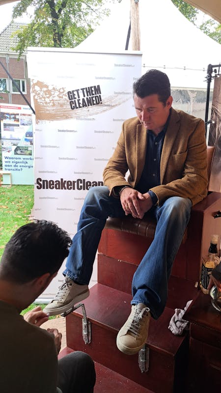 En daar bleef het niet bij. Hij liet zijn sneakers schoonmaken door de Sneaker Cleaners. Zijn sneakers zagen er daarna weer als nieuw uit en kunnen weer extra lang mee. Een mooi voorbeeld van verlenging van de levensduur van spullen. Daarmee wordt de afvalberg weer een beetje lager.