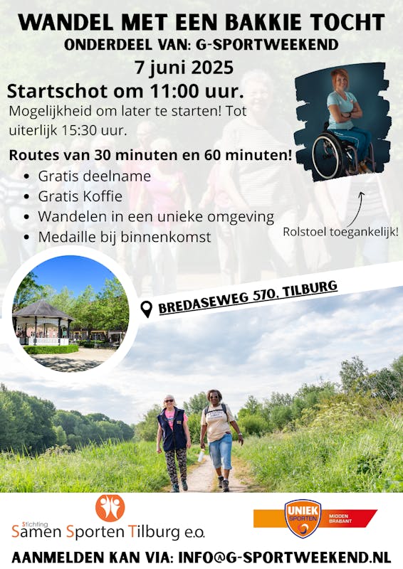 En dit jaar zijn er weer meer extra activiteiten en evenementen waaronder een wandelevent wat vanuit Uniek Sporten ondersteunen wordt: ‘Wandel met een bakkie tocht’