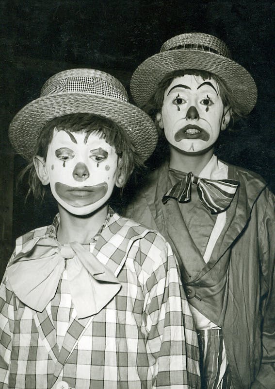 En zelden keek een Clownsgezicht ooh zo bedrukt,