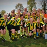 En nog was de koek niet op! In de 82e minuut wist Mierlo Hout voor de 5e keer vandaag de defensie van Nemelaer te verassen, 5-5. Het slotwoord was gelukkig voor de kampioenskandidaat. Na een mooie pass van Kim van Deurse wist Tessa Jussen die vandaag wel een ruime voldoende haalde de uiteindelijke 6-5 binnen te schieten waardoor de drie punten gepakt werden en in Haaren bleven. Na het laatste fluitsignaal kon het lang verwachte kampioensfeest dan eindelijk beginnen. Onder de aanwezigheid van een groot aantal toeschouwers werd de kampioensbeker en bijbehorende kampioensmedailles uitgereikt door een vrouwelijke KNVB-official. Ondanks het feit dat de meiden de laatste wedstrijden hun normale niveau niet haalden, zijn ze wel verdiend en overtuigd kampioen geworden van deze klasse!