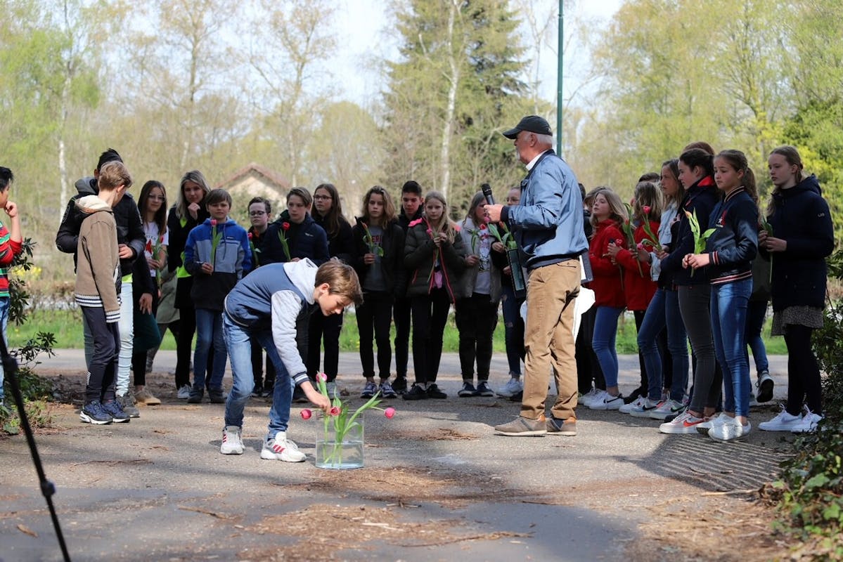Groep 8 van basisschool de Klim-op was hierbij aanwezig, onder begeleiding van gids en vrijwilliger van Gedenkplaats Haaren, de heer Cees van Roessel. We bedanken de kinderen en Cees voor hun mooie bijdrage.