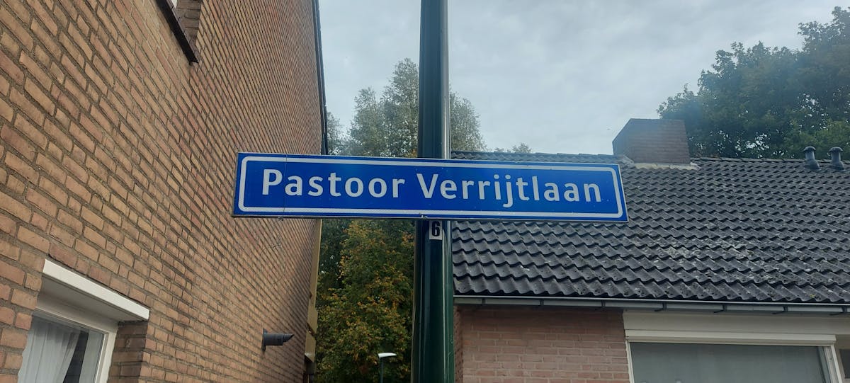 Tussen de afgebroken school en de verdwenen sporthal is achter de kerk de Pastoor Verrijtlaan. Mooi aandenken aan deze markante persoonlijkheid die Haaren op 'de kaart' zette.