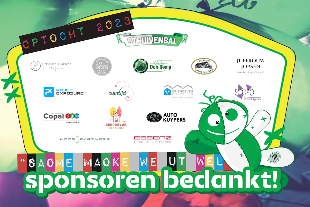 Graag wil CV De Strûivenwèners iedereen bedanken die het carnaval in Haaren een warm hart toe heeft gedragen de afgelopen periode. Van de eigen vrijwilligers tot die in de tent, de sponsoren en organisatoren en natuurlijk Den Domp en het Strûivenbal: bedankt! Zonder jullie was het niet zo'n mooi feest geweest! Hopelijk kunnen we ook volgend jaar weer op jullie rekenen!