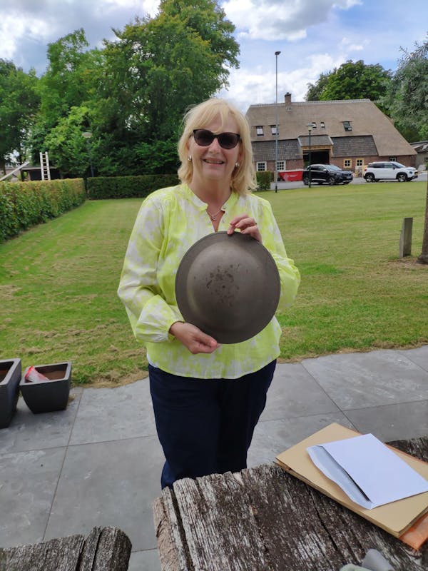 Een kleine toelichting: John Fay uit Engeland vocht in Haaren voor onze bevrijding en stierf op de hoek van de Kapelweg en de Roonsestraat. Zijn helm werd door Tom van Alphen gevonden in de Belverse Akkers. De naam van John Fay staat uiteraard eervol vermeld op het monument op het Mgr. Bekkerplein. Opdat wij nooit vergeten...