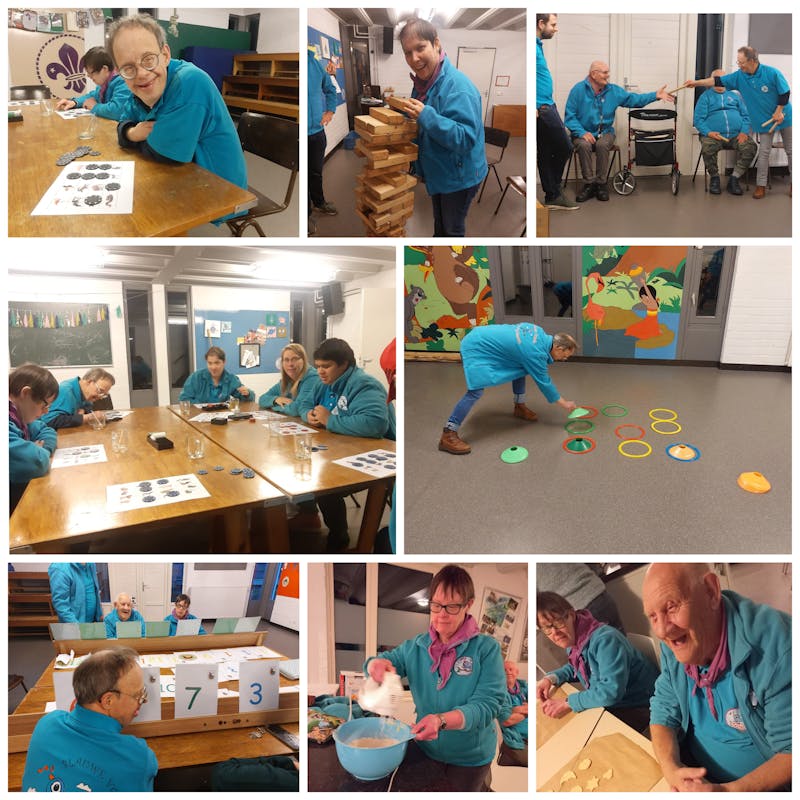 Elke week verzorgen we een gezellige avond voor onze leden. We starten altijd met een kopje koffie of thee en als alle leden aanwezig zijn, gaan we samen een activiteit doen. Net als bij de jeugdspeltakken van onze vereniging, bieden we een gevarieerd programma aan op de verschillende activiteitengebieden. Zo spelen we spelletjes, gaan we sjoelen of knutselen, doen we een quiz, koken/bakken we regelmatig iets lekkers, gaan we (speur)tochten lopen, maken we een kampvuurtje of zijn we sportief bezig met bijv. een hindernisbaan, kubb of blokjesvoetbal.