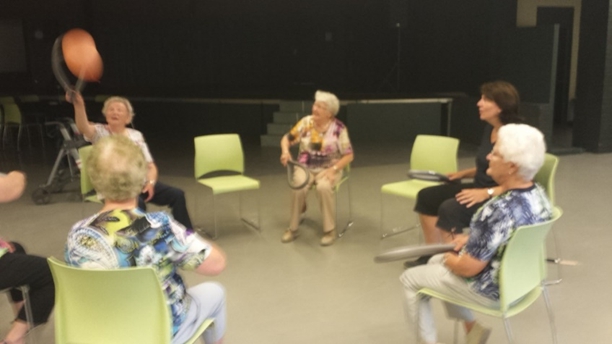 Want dat is het mooie van de senioren-gym: iedereen doet mee naar eigen vermogen.