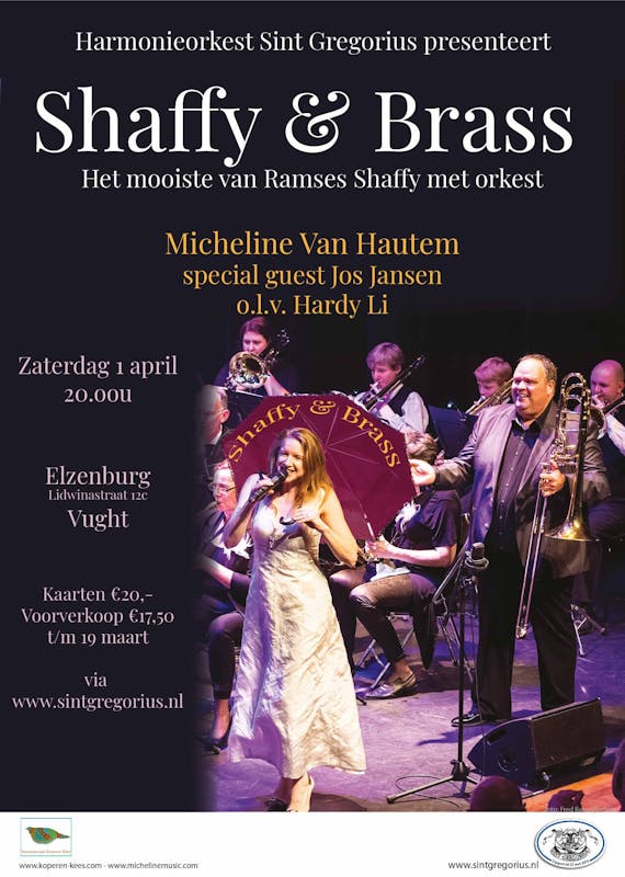 De prachtige chansons van Ramses Shaffy, gezongen door Micheline Van Hautem en begeleid door harmonieorkest Sint Gregorius. Waar de Vlaamse zangeres eerder al furore maakte met het programma Brel & Brass, verrast ze nu met de onvergetelijke chansons van Ramses Shaffy. Samen met de warme klanken van het orkest en als speciale gast de veelgevraagde bastrombonist Jos Jansen belooft het een muzikale avond om niet snel te vergeten.