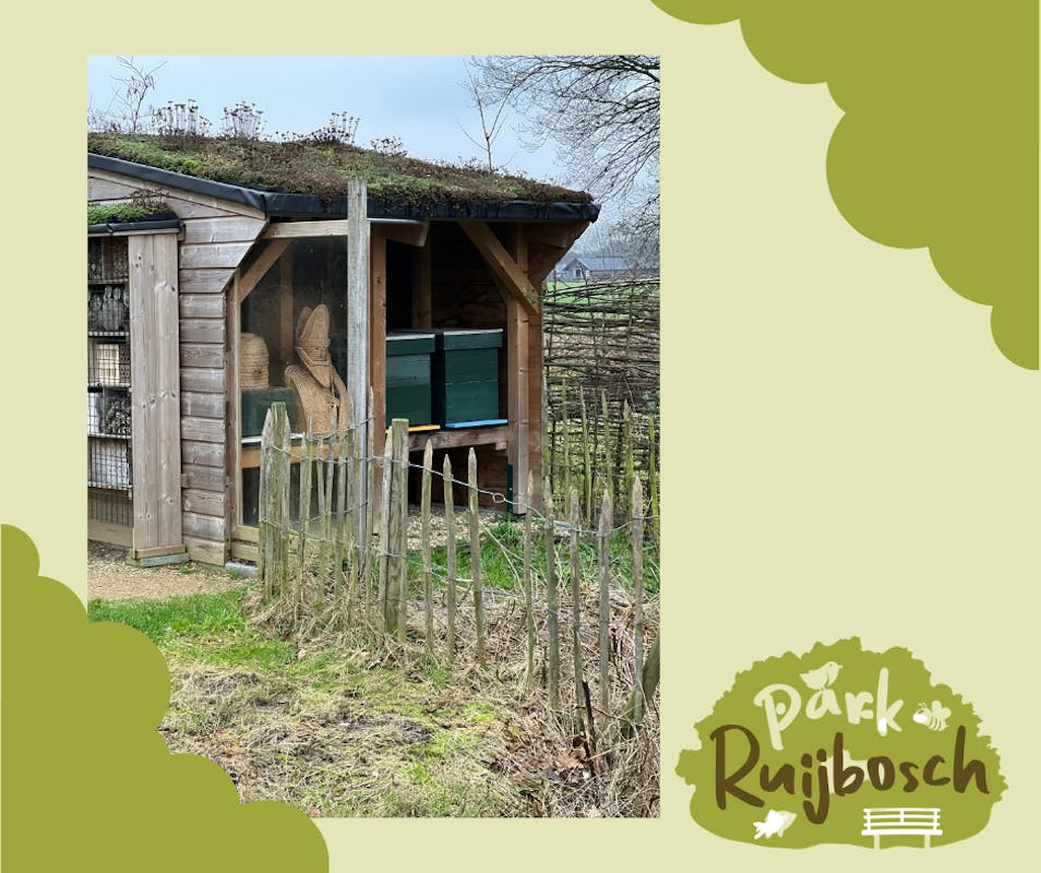 Degenen die regelmatig een wandeling maken in ons mooie Park Ruijbosch zal het opgevallen zijn dat het bijenhalletje is uitgebreid met een bijzonder uit buntgras gevlochten beeltenis? Kinderen dachten al dat het om sinterklaas gaat. Het betreft hier echter St. Ambrosius , beschermheilige van de imkers.