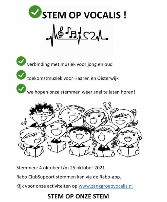 Zanggroep Vocalis doet mee aan Rabobank Clubsupport.