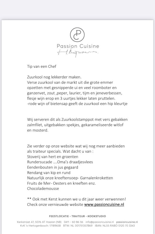 Cultuur snuiven, dat kan zaterdag 29 november bij passioncuisine. Mogen diverse koks uit de omgeving u uitdagen met hun keuken. U kunt nog reserveren via info@passioncuisine.n...