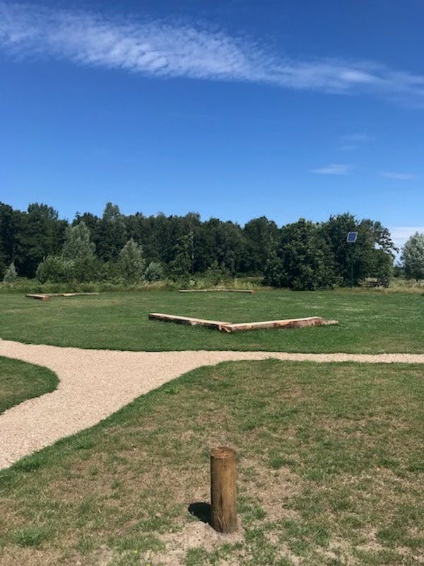 - Robuuste halve boomstammen omlijsten een speelveld, wat straks overal voor gebruikt kan worden.