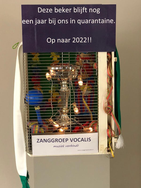 Jaa, vorig jaar wonnen we de eerste prijs in de carnavalsoptocht. De wisselbeker blijft dus nog een jaar in quarantaine bij ons. Zie bijgaande foto.