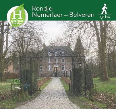 Je loopt via boomkwekersgebied naar Kasteel Nemerlaer en vandaar naar Belveren, een heel oud deel van Haaren dat een beetje ‘los’ ligt van de dorpskern. Er staan nog oude, soms monumentale boerderijen en een Vlaamse schuur. Ook stond er aan het Eind (van 1672 – 1856) een R.K. ‘schuurkerk’. N.B. De spelling van de naam Neme(r)laer is (bewust) wisselend: mét of zónder een ‘r’.