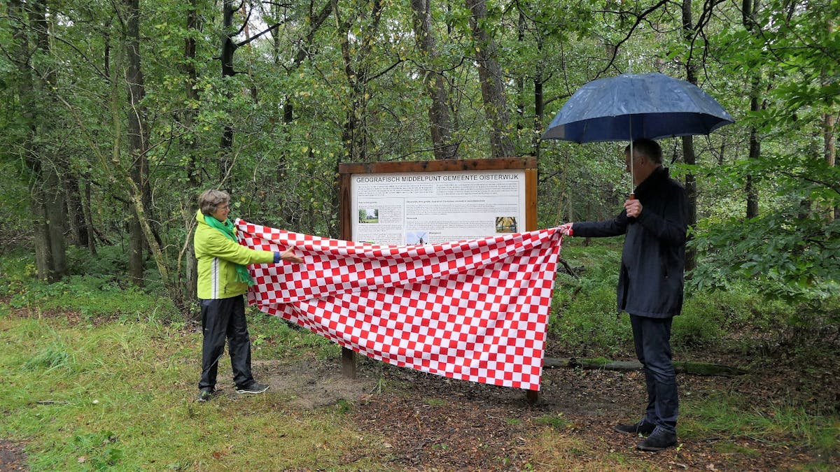 Bij de onthulling kreeg burgemeester Hans Janssen assistentie van Tiny Vermeer uit Haaren. Zij kwam op het idee dat Oisterwijk aan een nieuw geografisch middelpunt toe was sinds Haaren op 1 januari deel uit is gaan maken van de gemeente Oisterwijk. “Ik fietste langs het oude middelpunt en toen bedacht ik dat er een nieuwe moest worden gemarkeerd”, vertelde ze over dit aha-moment.